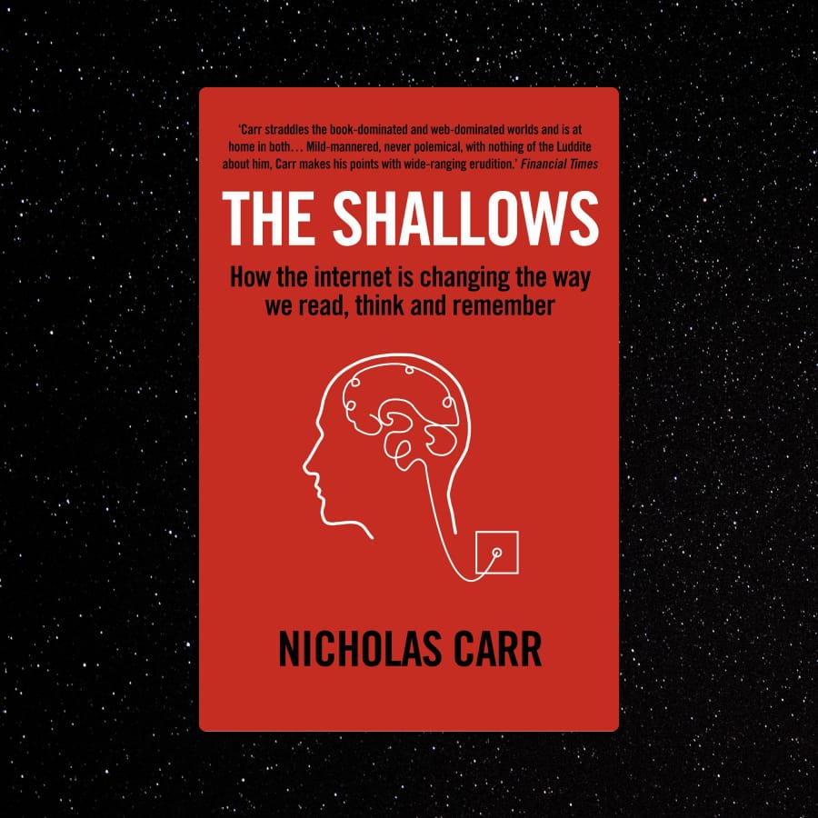 The Shallows: What the Internet is Doing to our Brains («Пустышка. Что интернет делает с нашими мозгами») Николаса Карра — одна из немногих книг, которую я почти дочитал. По сути, это краткая история технических устройств, повлиявших на человечество: от зарождения языка и письма до потенциально всеобъемлющего интернета. Новые способы делиться знаниями переворачивали сознание отдельных людей, которые впоследствии фундаментально меняли структуру общества.