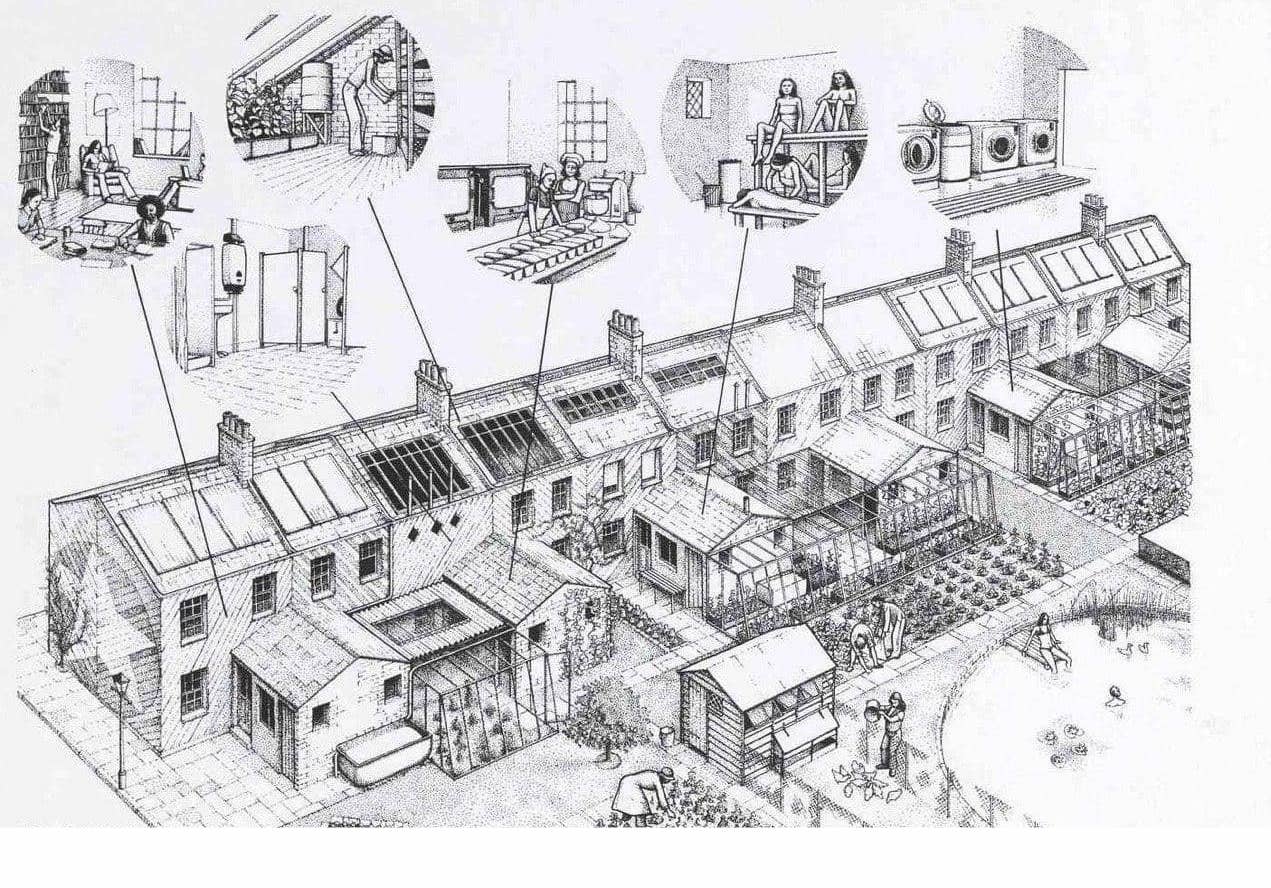 Проекты экопоселений и back-to-the-land эстетики нью-эйджа — «осуществимые утопии», известные нам ранее, — предлагали весьма ограниченные способы построить идеальное общество. Тридцать лет назад они были полны эзотерики и базировались на идее общего блага, достигаемого даже авторитарными способами — через ограничение, изолированность сообществ и порой трайбализм. Соларпанк, напротив, опирается на возможность вообразить благо без единого идеала. Его инструментами становится пересборка мира, адаптируемость, симбиоз, — мета-анархизм. Сообщества идеального мира соларпанка разнообразны за счет горизонтальности отношений и отсутствия иерархий. Кроме того, автономность этих сообществ подразумевает не только политическую децентрализацию, но и деколонизацию, инклюзивность, внимание к практикам и технологиям коренных народов. Они стремятся извлечь из цивилизации, этически отвратительной истории человечества, — ценное, то, что нужно для построения нового мира (как то описано в зине Take What You Need and Compost the Rest).